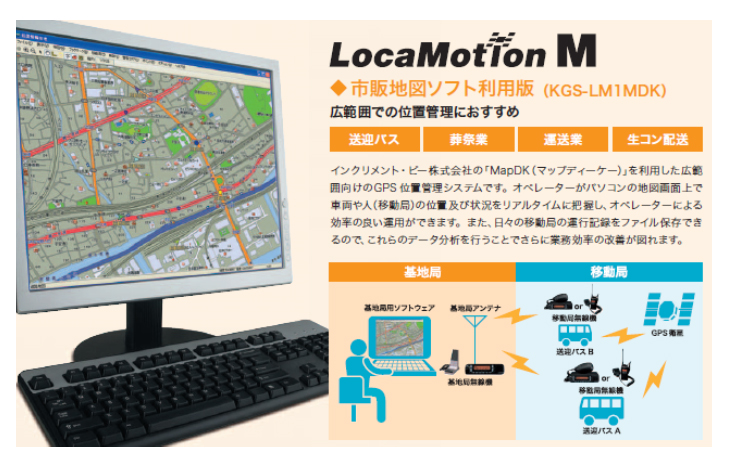 GPSアンテナ付属タイプの車載型無線機をご使用頂いた場合は、PC画面上で車両の位置管理が可能な