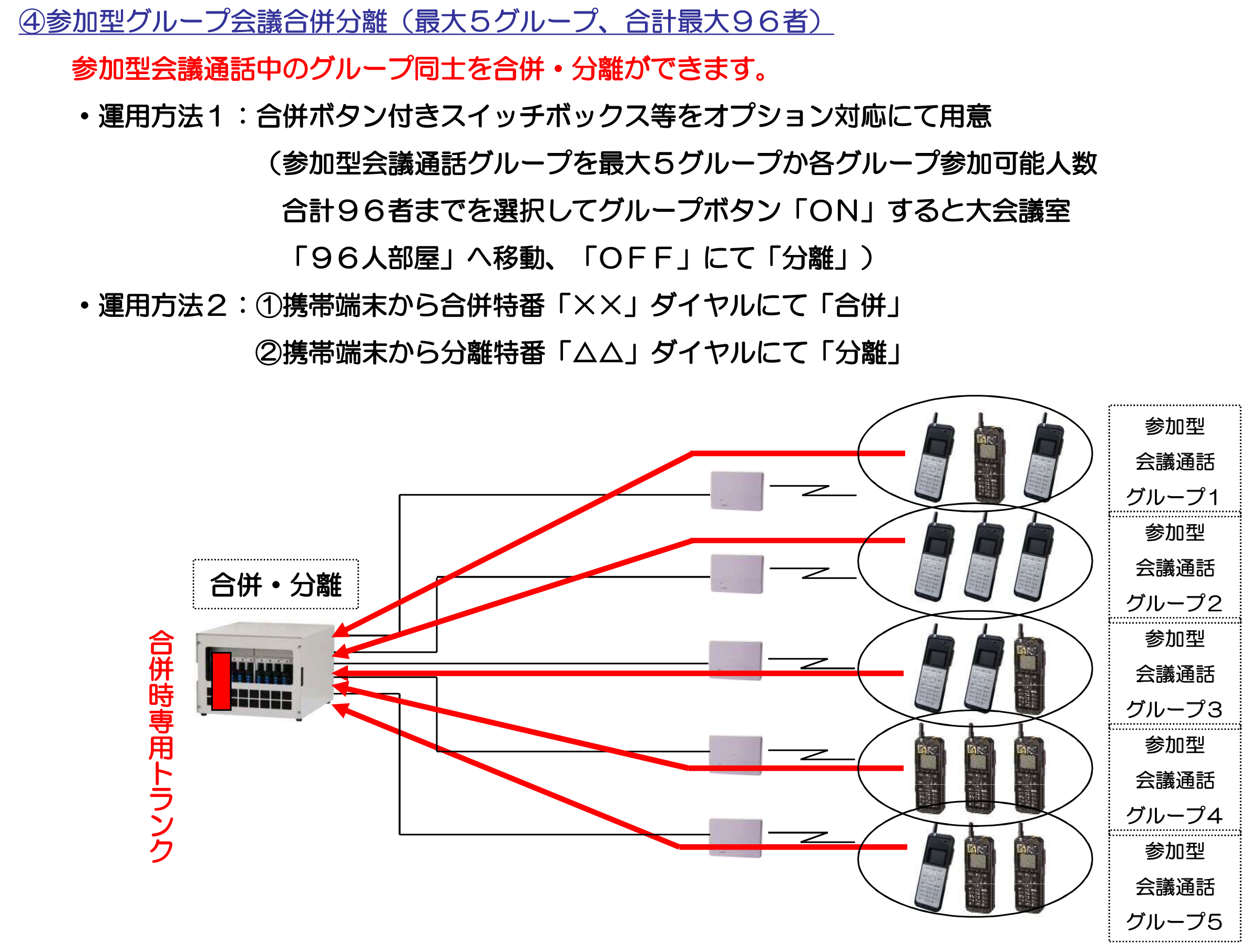 ※注2:通話時間を3分以内として2秒間の休止時間を設けるようになっています。また同一システムに収容されている携帯電話機同士でなければ通話できません。