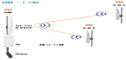 - 1:N(Point to Multipoint)方式 最大32拠点をつなぐことができます。
