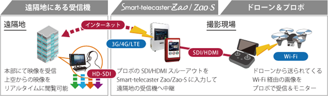 Smart-telecaster Zao(スマートテレキャスター ザオー)は、3G,LTE,BGANなどのモバイル回線(最大7回線)を利用して、安定した高画質な映像をライブ中継する製品です。